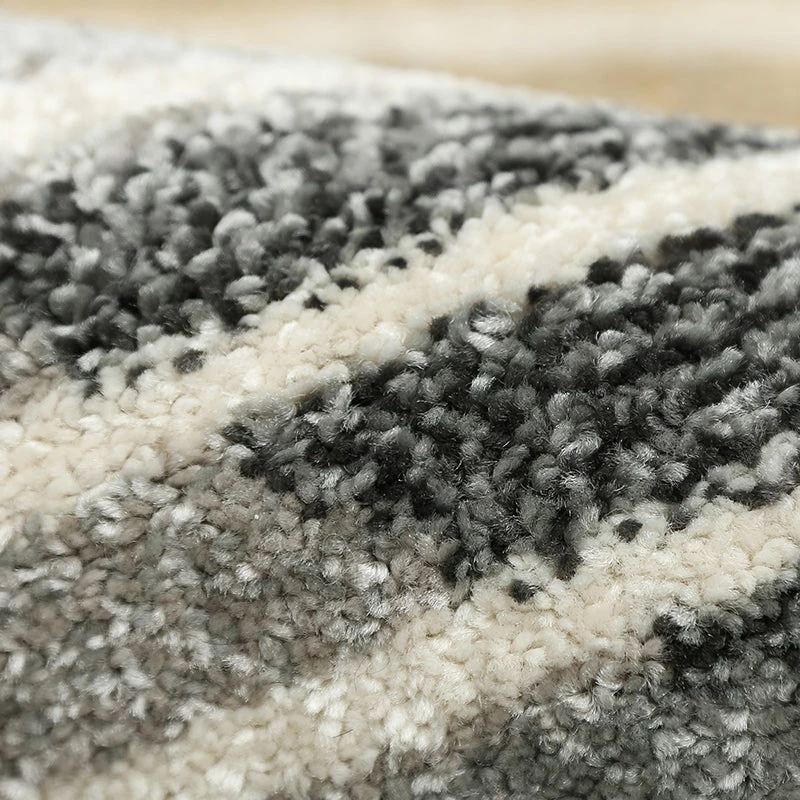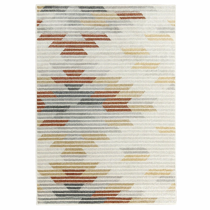 We love the native inspired tribal pattern of this modern rug. We see this a lot in both fashion and interiors, and the warm, earthy hues of rust, mustard and grey give it a modern, homey look. We see it working well with both eclectic and nordic inspired decor themes. With a plush pile construction it’s made of soft acrylic, and comes in three standard sizes.