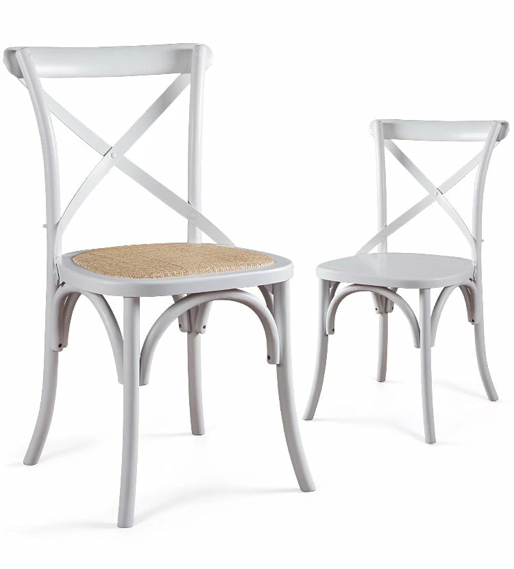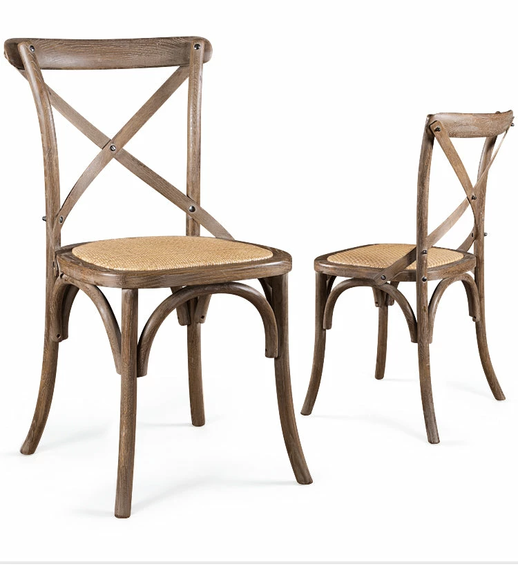 The cross-back country chair has a lovely organic feel to it. Soft curves of oak wood in a weathered vintage finish and rattan seat conspire to add charm and character to any living room. The light colour makes it an easy match with eclectic interiors or even to soften a modern look. Great as dining chair or solo in the bedroom or entrance hall.