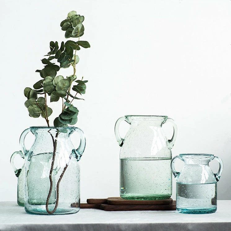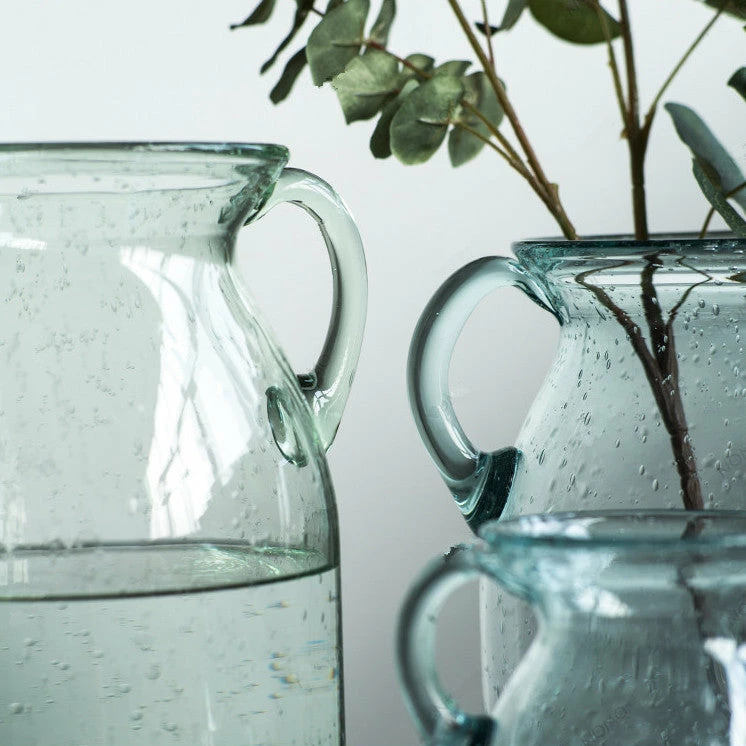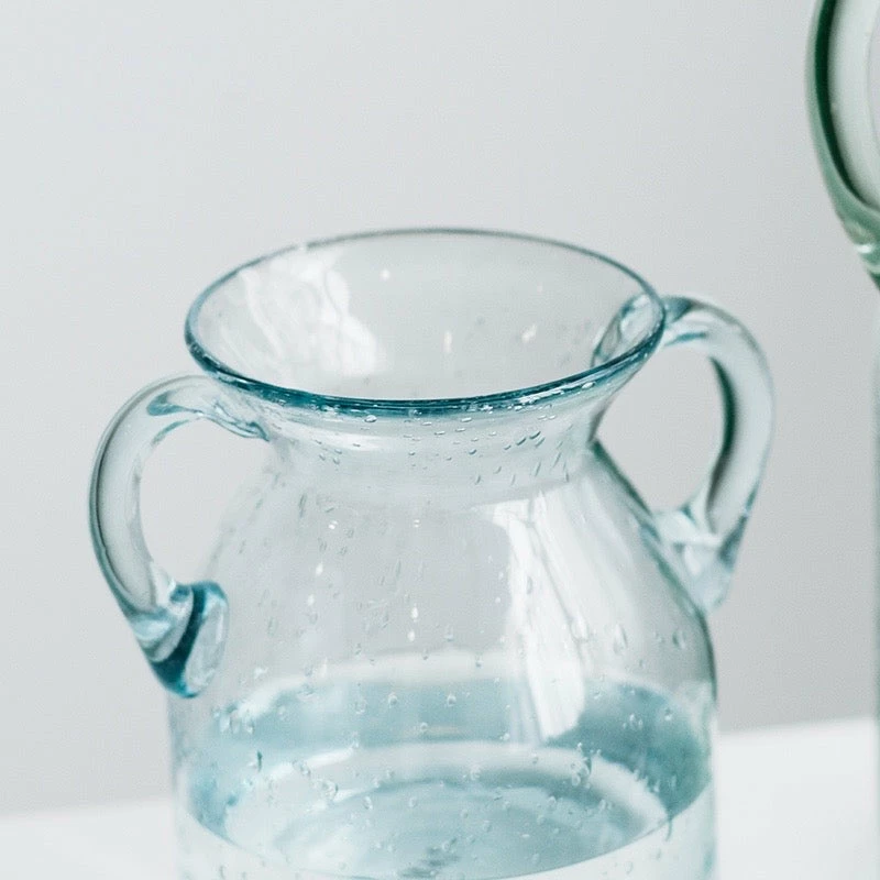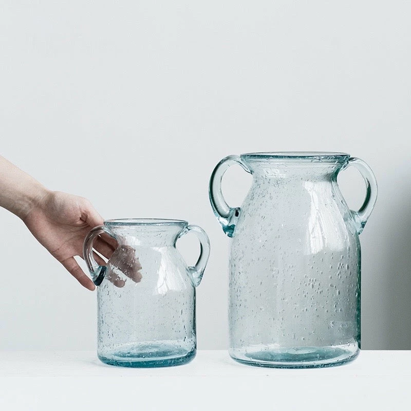 These beautiful vintage style pale vases are hand blown, and you can see the tiny bubbles within the glass – making each unique. It gives them real character and personality. The glass also has a lovely blue or green tint which adds to its vintage aesthetic. They look great as the base for a classic flower arrangement that will bring style and beauty to any room.