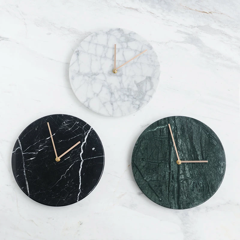 - Materials: Natural marble face, metal hands