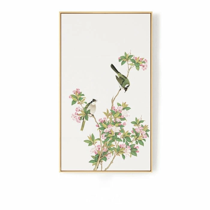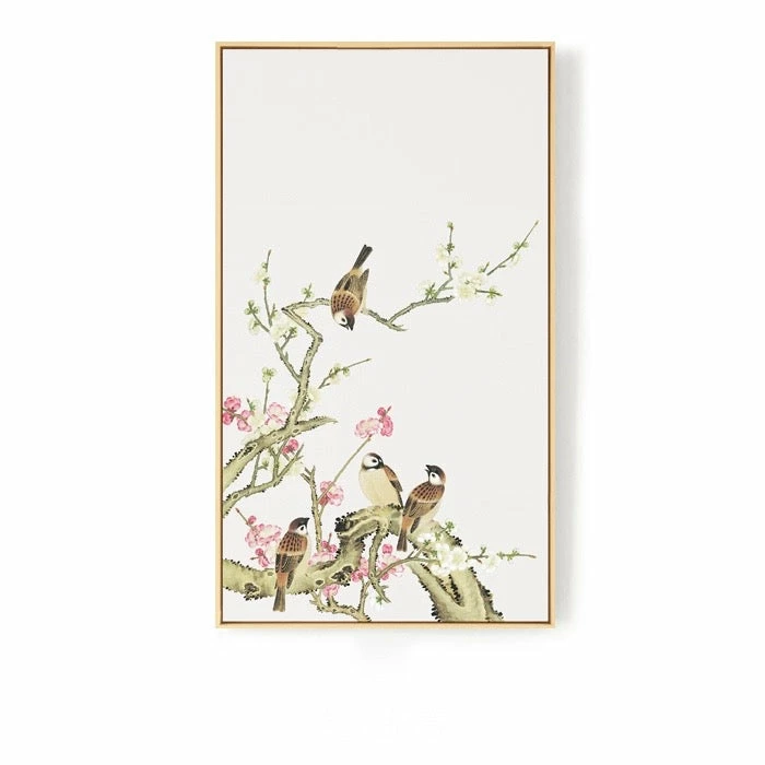 The Oriental Birds picture is a piece of marvellous artwork. We love the beautiful birds on the branches with flowers that are picturised on a white background. This durable art is printed on a high-quality canvas framed using the natural wood floating frame. We love to use it in the master bedroom, study room, home office, or the living room to enhance its elegance. It makes us experience real nature through this artwork. It is available in four styles that come in three sizes. We ship the product worldwide and deliver it for free in Hong Kong.
