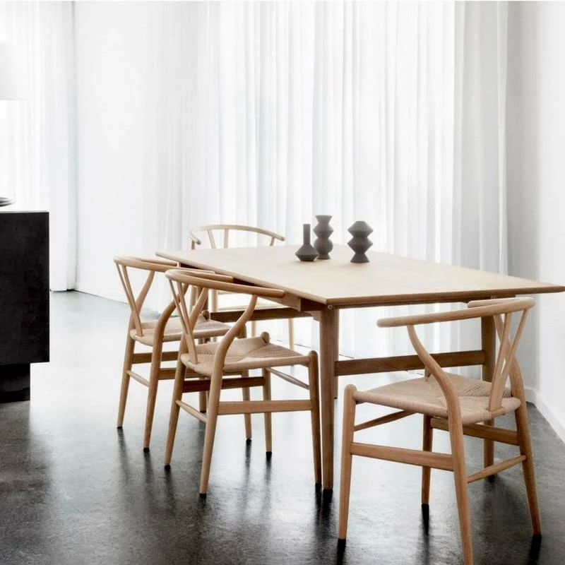 There’s few pieces of designer furniture that are more recognisable and iconic that the Wishbone chair, created by Danish designer, Hans J Wegner in 1949. Made beech wood and woven cord it makes a light, comfortable dining chair and looks as good today as it did in 1949. Our faithful reproduction is available in classic natural matt finish and variety of colours and materials.